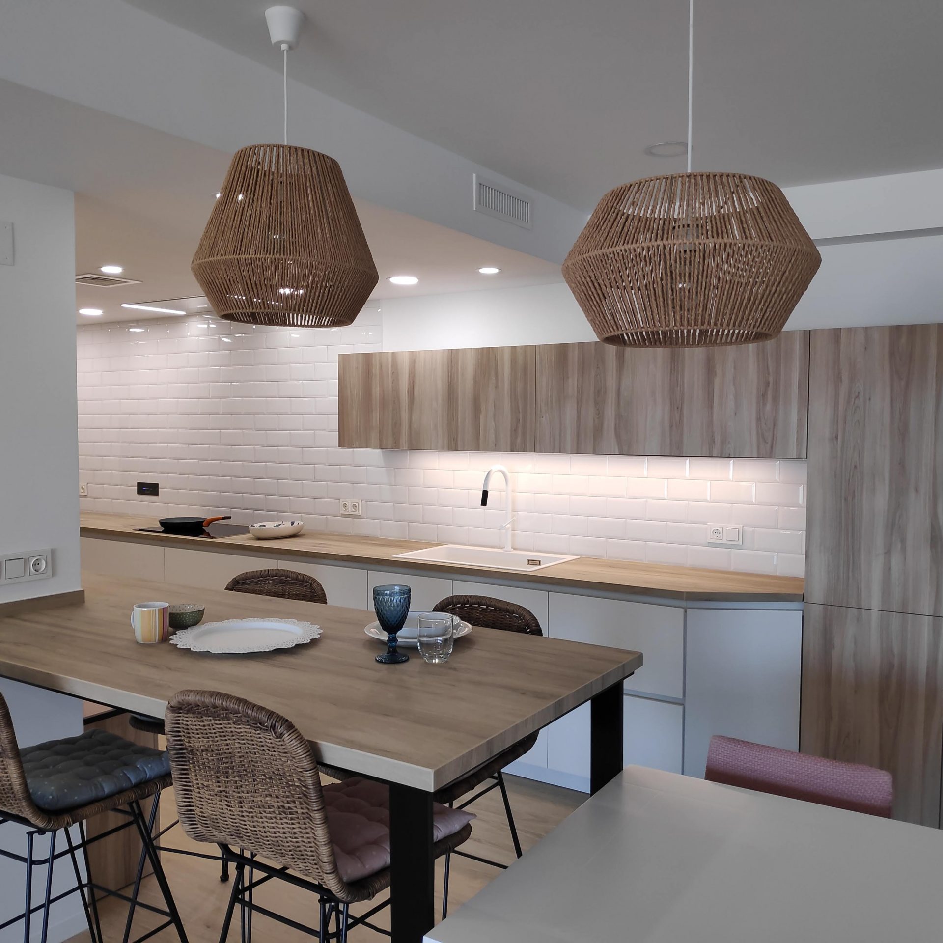 La iluminación juega un gran papel en las cocinas y en esta aun mas ya que no tiene una ventana cercana, en la zona de fregadero se ha instalado luz de trabajo integrada en los muebles.